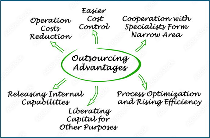 Prin externalizare, responsabilitățile sunt transferate către un furnizor specializat, care asigură:
